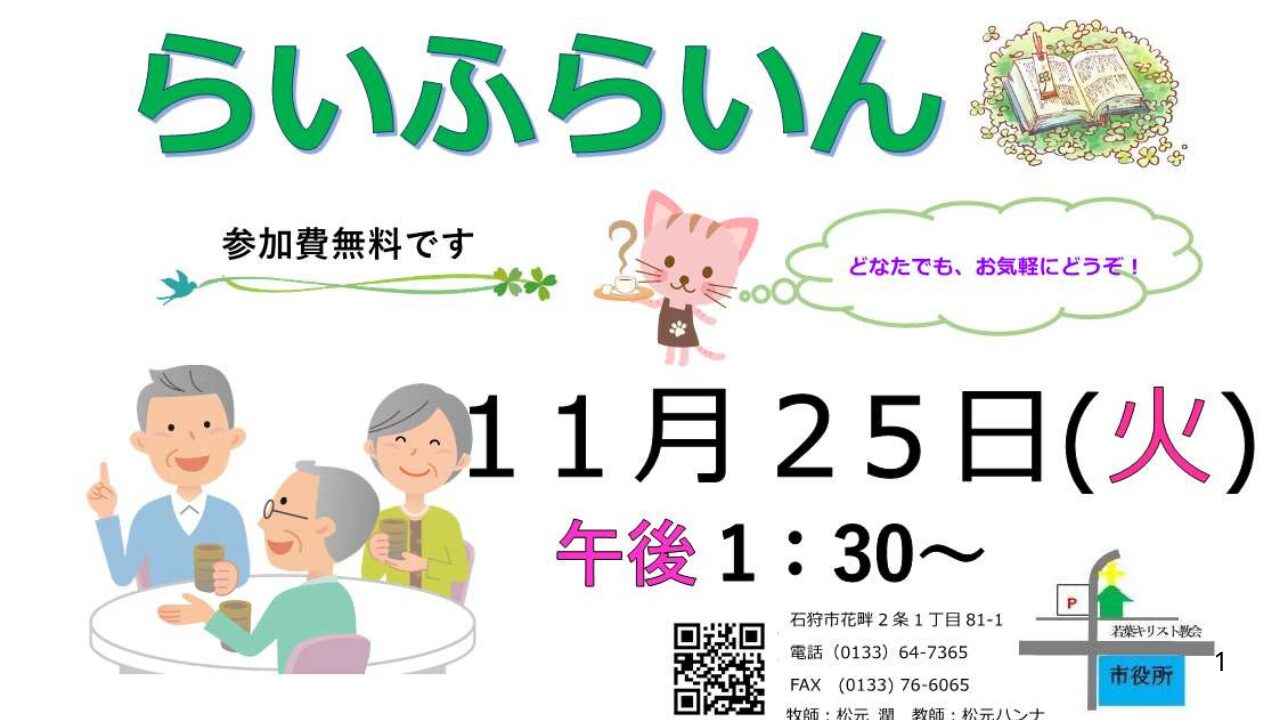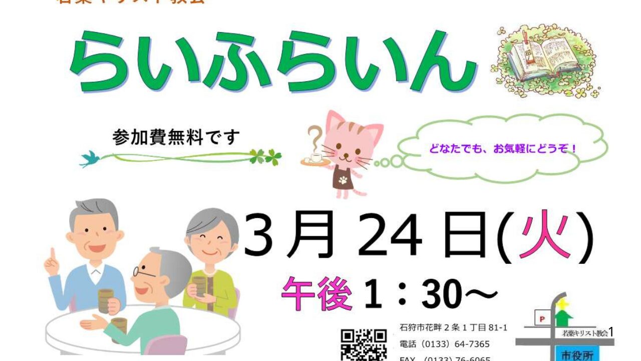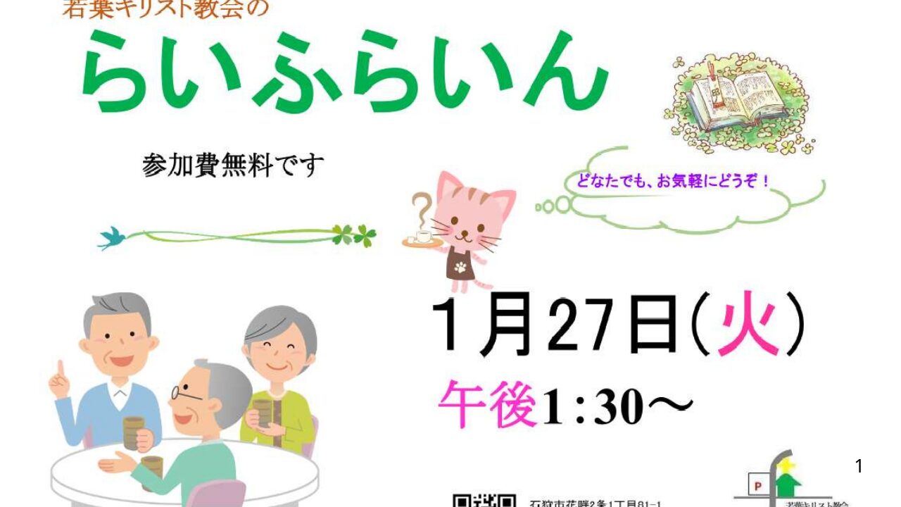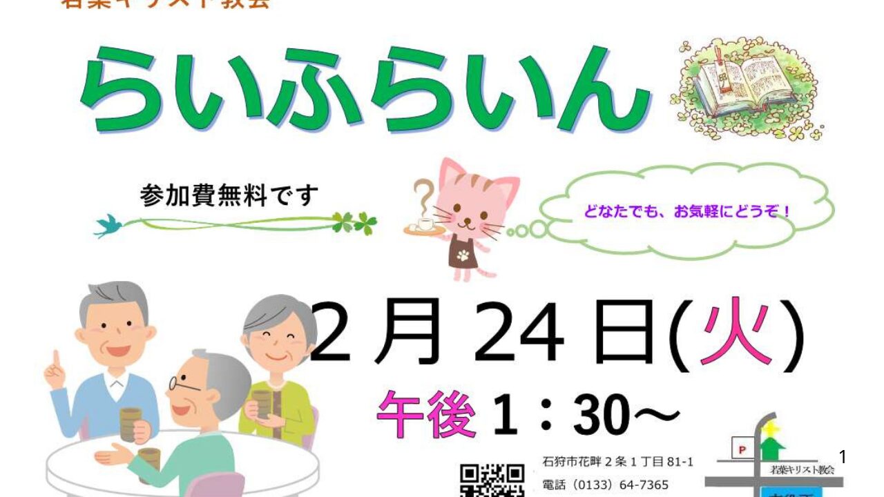 | 車の場合 | Googleマップ参照。国道337経由でほとんど、渋滞がありません。 教会駐車場30台(道路挟んで真向かい) |