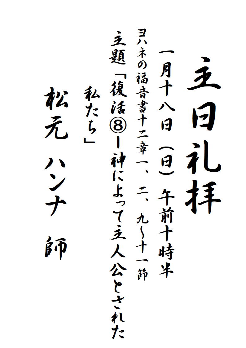 1月18日 主日礼拝 宣教 松元ハンナ 師 主題「復活⑧ー神によって主人公とされた私たち」